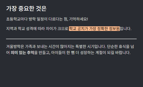 특히 겨울방학은 가족과 보내는 시간이 많아지는 시기이니, 단순한 휴식보다 의미 있는 추억을 만드는 기간이 되길 바랍니다.