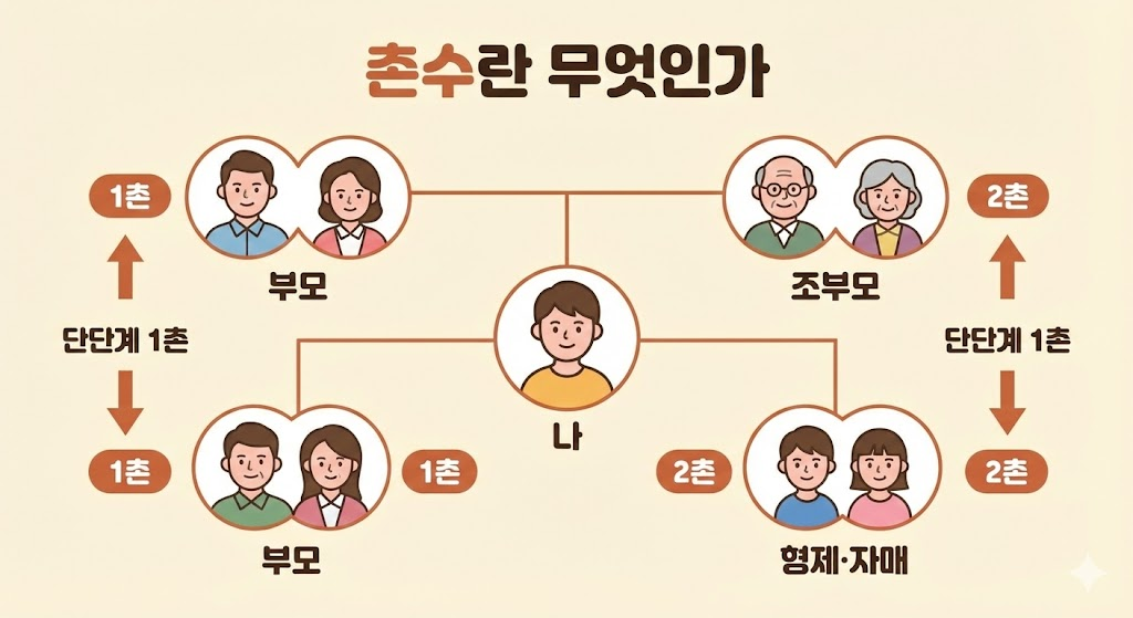 가족 모임에 가면 한 번쯤 이런 생각이 듭니다. “이분은 나랑 몇 촌일까?” 촌수는 혈연 관계의 가까운 정도를 숫자로 나타낸 개념입니다. 막상 계산하려고 하면 헷갈리는 경우가 많습니다. 오늘은 촌수 관계도, 계산 방법, 가족 호칭 정리까지 쉽게 풀어보겠습니다. 원리만 알면 어렵지 않습니다.
