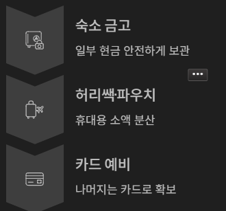 - 일부는 숙소 금고에 보관