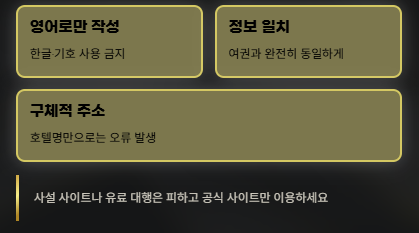 • 숙소 주소는 구체적으로 기입 (호텔명만 적으면 오류 발생 가능)