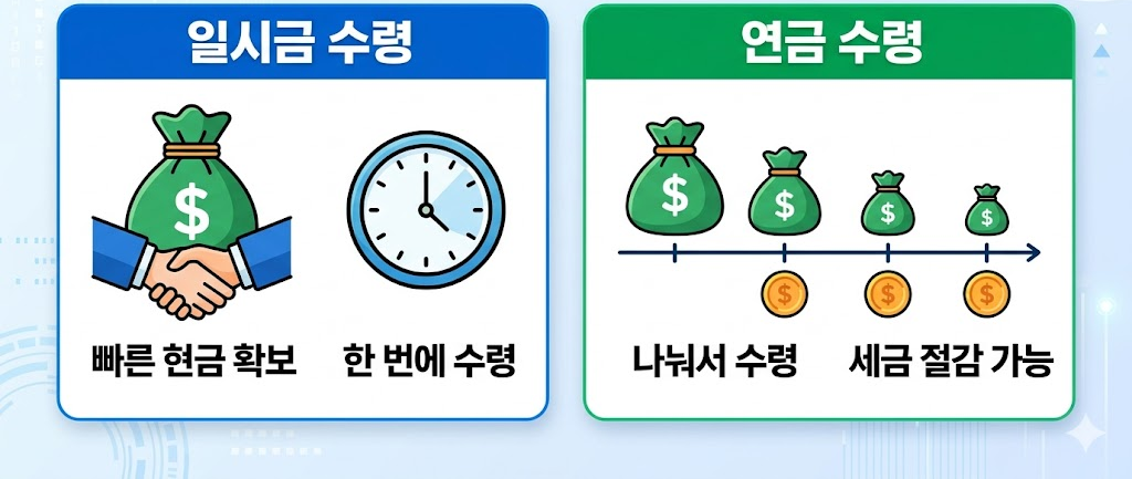 | 일시금 | 한 번에 수령 | 빠른 현금 확보 |