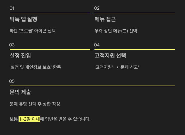 틱톡 고객센터에 여러 번 문의해본 결과, 자동응답보다도 이메일로 직접 보낸 문의가 훨씬 빠르고 구체적으로 처리되었습니다.