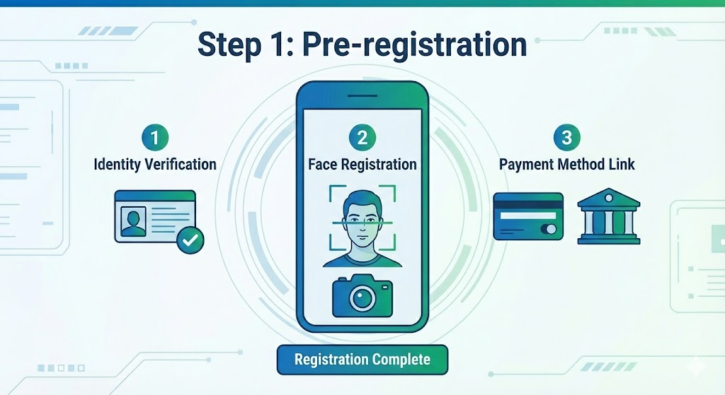 A. 제휴 앱이나 매장 단말기를 통해 얼굴 정보와 결제 수단을 등록하면 됩니다.