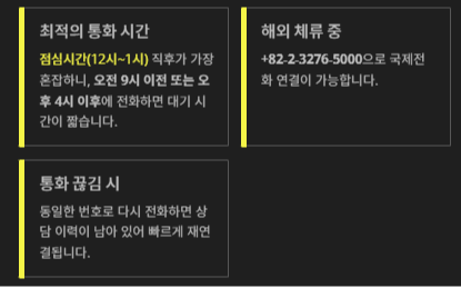- 점심시간(12시~1시) 직후가 가장 혼잡하니, 오전 9시 이전 또는 오후 4시 이후에 전화하면 대기 시간이 짧습니다.