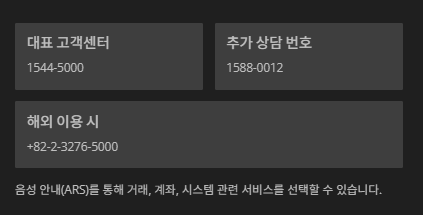 이 번호로 전화를 걸면 음성 안내(ARS)가 나오며, 각종 거래·계좌·시스템 관련 서비스를 선택할 수 있습니다.