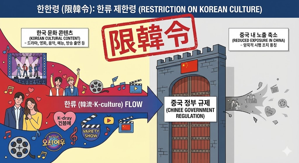 문자 그대로 해석하면 “한류(韓流·K‑culture)를 제한하는 명령”이라는 뜻이에요.