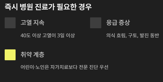 40도 이상 고열이 3일 이상 지속되거나, 의식이 흐려지고 구토나 발진이 동반된다면 즉시 병원 진료를 받아야 합니다.