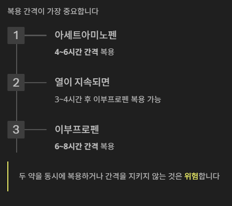 해열제 교차복용 시에는 간격이 가장 중요합니다.