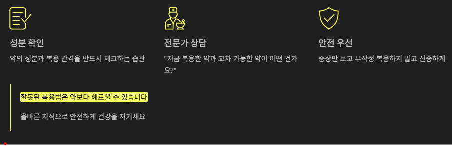 필요할 때는 약사에게 “지금 섭한 약과 교차 가능한 약이 어떤 건가요?”라고 물어보는 것이 가장 안전한 방법입니다.