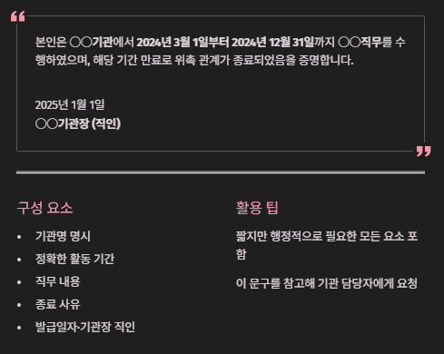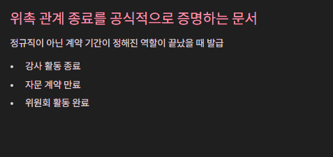 기관 입장에서는 활동이 종료된 사실을 명확히 남길 수 있고, 개인은 자신의 경력 및 행정 기록을 깔끔히 정리할 수 있다.