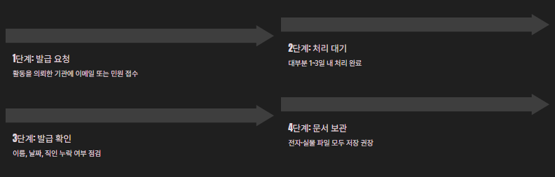 보통 이메일이나 민원 접수를 통해 발급을 신청하며, 기관마다 처리 소요 기간은 다르다.