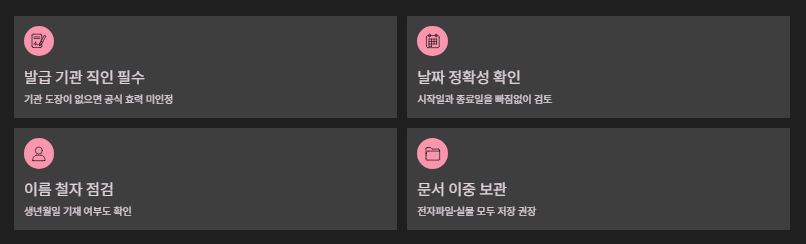 1. 발급 기관 직인 필수 — 기관 도장이 없으면 공식 효력이 떨어진다.