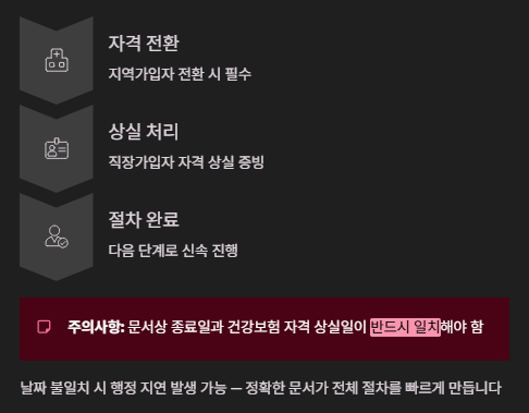이때 문서상 종료일이 건강보험 자격 상실일과 일치해야 한다.