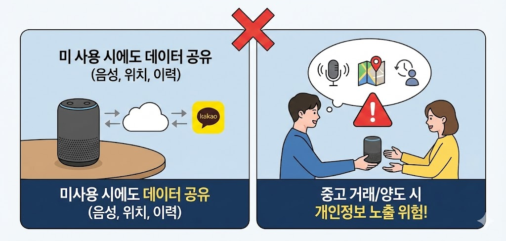 헤이카카오는 카카오 계정과 연동되어 로그인 및 음성 명령 기능을 제공합니다. 그러나 사용을 중단했음에도 계속 카카오 계정에 연결되어 있으면, 음성 명령 기록, 위치 정보, 서비스 사용 이력 등이 백그라운드에서 계속 공유될 수 있습니다.