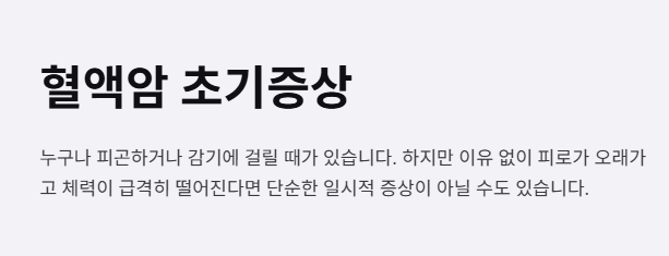 누구나 피곤하거나 감기에 걸릴 때가 있습니다. 하지만 이유 없이 피로가 오래가고 체력이 급격히 떨어진다면 단순한 일시적 증상이 아닐 수도 있습니다. 특히 혈액암의 초기증상은 일상적인 피로나 감기와 비슷하게 나타나기 때문에 놓치기 쉽습니다. 조기에 발견하면 치료 가능성이 훨씬 높아지므로 몸의 작은 변화라도 유심히 살펴보는 것이 중요합니다.