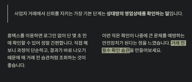 사업자 거래에서 신뢰를 지키는 가장 기본 단계는 상대방의 영업상태를 확인하는 일입니다.