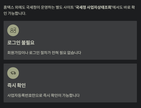 - 로그인 없이 메뉴에서 ‘사업자등록 상태조회’ 선택