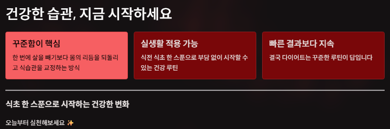 특히 식전 한 스푼으로 식사량을 줄이는 것은 실생활에서도 부담 없이 적용할 수 있는 팁입니다.