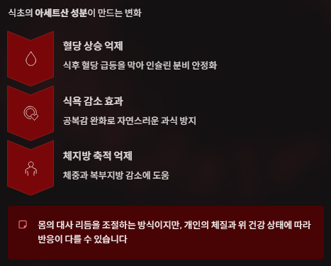 아세트산(acetic acid)이라는 성분이 들어 있는데, 이 성분은 다음과 같은 효과를 가질 수 있습니다.