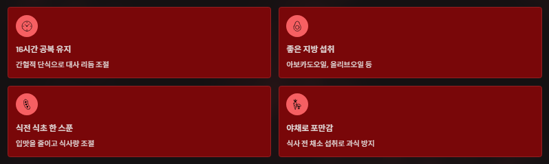 1️⃣ 16시간 공복 유지(간헐적 단식)