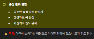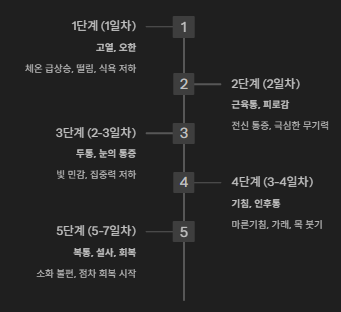 | 4단계 | 기침, 인후통 | 마른기침, 가래, 목 붓기 |