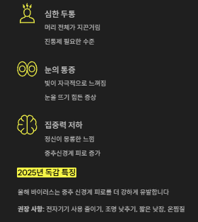 2025년 독감 증상 순서 요약표
