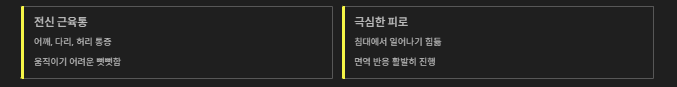 | 2단계 | 근육통, 피로감 | 전신 통증, 무기력 |