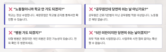 특히 공무원과 학교는 그대로 운영된다는 점이 가장 중요한 포인트입니다.