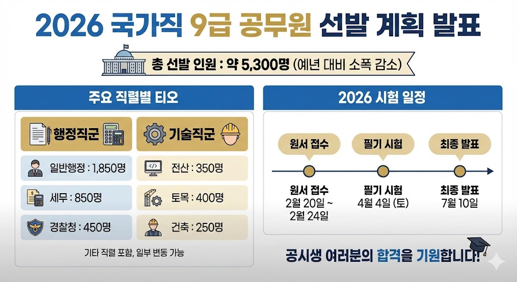 2026년에도 드디어 공식 발표가 나왔습니다. 올해는 예년보다 다소 줄었지만, 주요 행정직과 기술직을 중심으로 여전히 많은 인원이 선발됩니다.