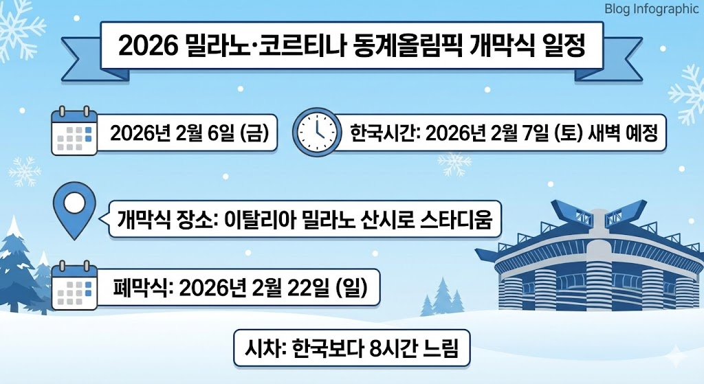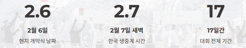 - 개막식 생중계 일정 : 2026년 2월 7일(토) 새벽 예정 (한국시간 기준)