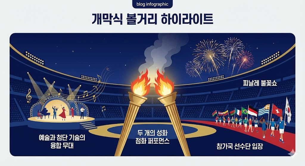 2026 밀라노·코르티나 개막식은 단순한 퍼포먼스를 넘어 이탈리아의 문화와 감성을 담은 예술 축제로 꾸며집니다. 주요 포인트는 다음과 같습니다.