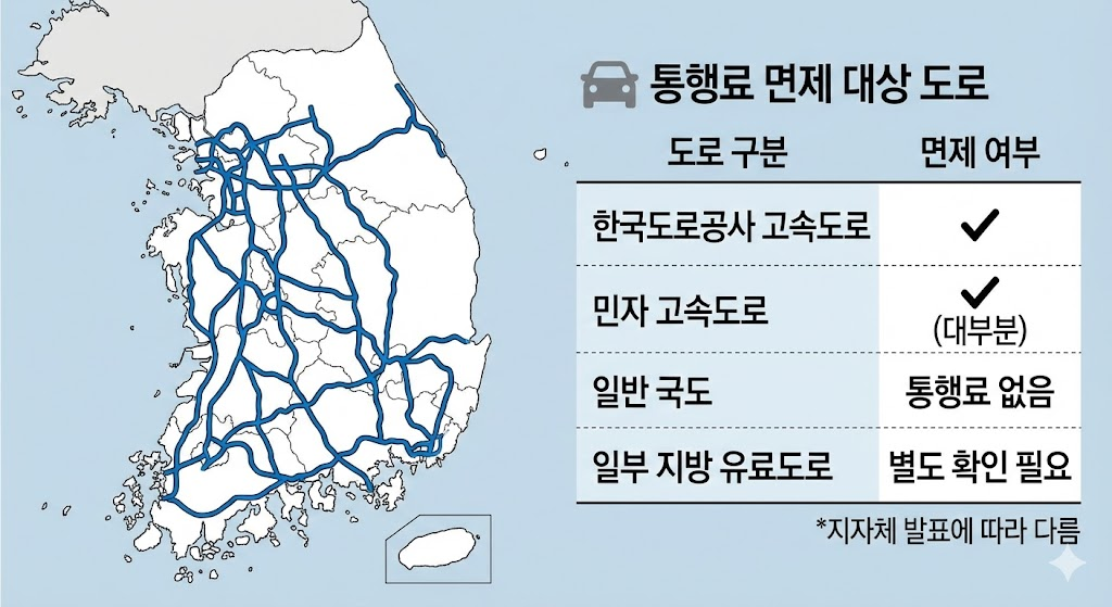 | 일부 지방 유료도로 | 지자체 발표에 따라 다름 |