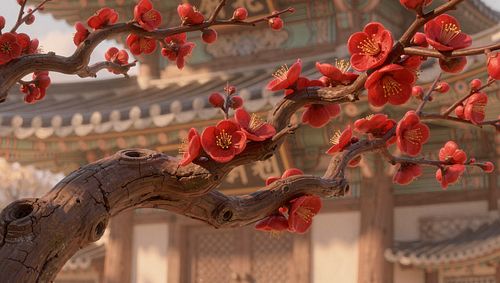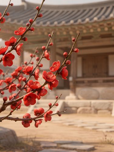 경남 양산에 자리한 통도사는 사계절 아름다운 풍경을 자랑하지만, 특히 이른 봄이 되면 붉은 홍매화가 장관을 이룹니다. 고찰의 전통 건축과 어우러진 선명한 붉은 꽃은 매년 많은 방문객과 사진가의 발길을 끌고 있습니다.