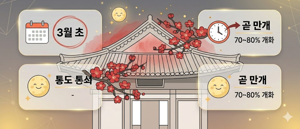 홍매화는 날씨에 따라 상태가 빠르게 변하므로 방문 전 확인이 중요합니다.