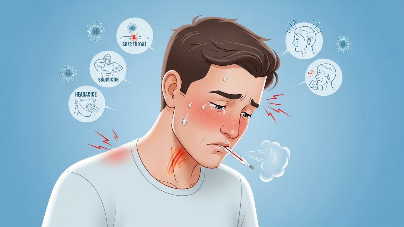 기침보다는 몸 전체가 욱신거리는 통증이 강하게 나타난다.