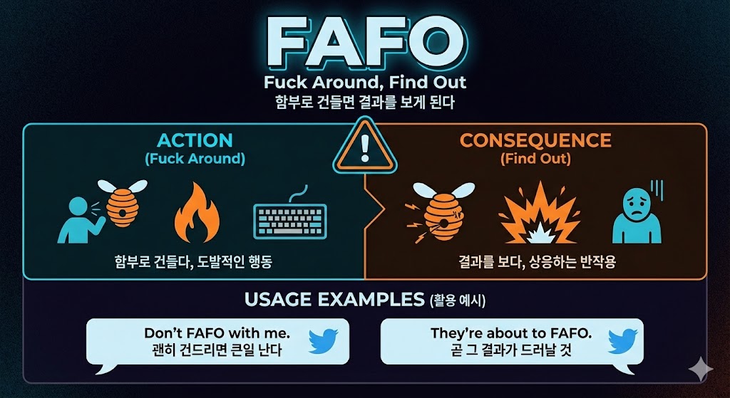 이처럼 FAFO는 단순한 비속어 축약이 아니라 “행동과 결과에 대한 경고”로 해석됩니다.