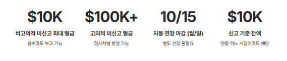 | 비고의적 미 申告 | 최대 $10,000 |