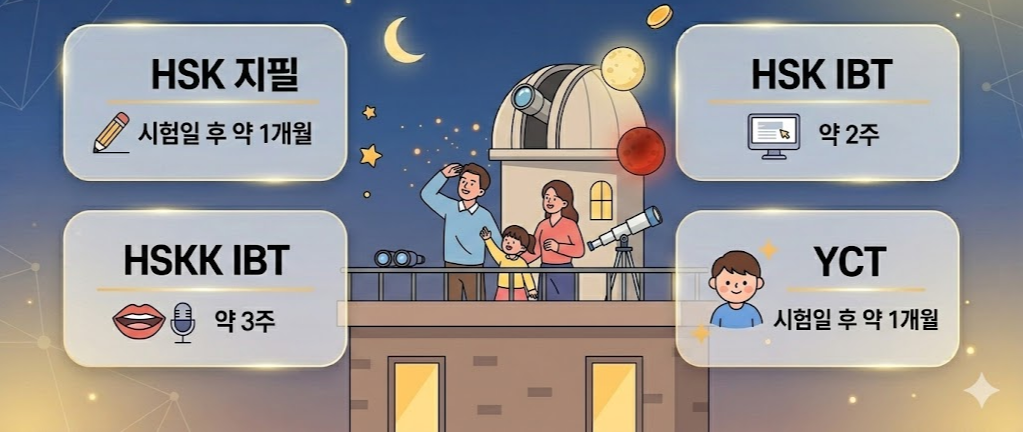 | HSK 지필 | 시험일로부터 약 1개월 후 |