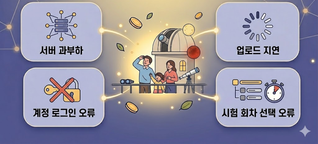 발표 당일에는 접속자가 몰리면서 오류가 자주 발생합니다. 주요 원인은 다음과 같습니다.