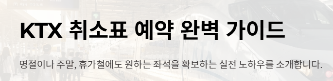KTX 기차표는 특히 명절이나 주말, 휴가철에 금세 매진됩니다. 하지만 자리가 없다고 너무 실망할 필요는 없습니다. 사실 KTX 취소표는 일정 시간마다 새로 풀리며, 조금만 요령을 알면 원하는 시간대 좌석을 확보할 수도 있습니다. 오늘은 취소표가 언제 풀리는지, 예약대기 신청 방법,그리고 표를 빠르게 잡는 실전 팁까지 자세히 정리해보겠습니다.